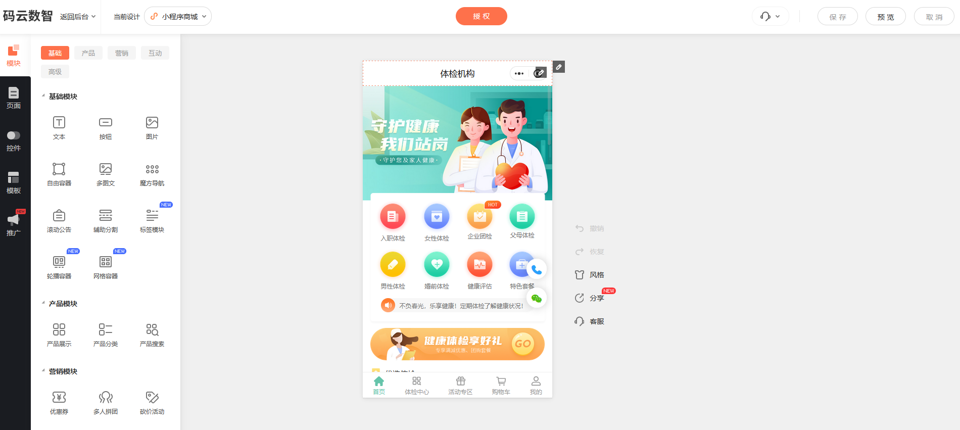体检预约小程序开发教程,2026体检机构数字化转型解决方案发表时间:2026-01-10 11:12 SaaS小程序制作平台为体检机构提供了轻量化转型方案——无需承担巨额研发成本,无需依赖专业技术人才,即可快速上线功能齐全、体验优质、安全合规的体检小程序。这款核心载体不仅能实现线上预约,更能助力机构优化服务流程、拓展获客渠道、提升用户复购率,以精细化运营适配个人与团体的多元体检需求,闭环线上线下服务。 体检套餐销售小程序怎么制作,体检预约小程序开发流程 小程序开发流程 第一步:选择一小程序制作平台 百度搜索【码云数智】,在【码云数智】平台注册账号,产品类型选择-商城 第二步:平台提供的 2000 + 行业模板,拖拽式编辑可视化装修 第三步:产品管理,批量或单个添加商品 第四步:设置营销功能,在营销中心开启功能,按需组合配置 第五步:申请认证小程序账号 第六步:微信支付开通,实现交易闭环 第七步:进行小程序备案 第八步:正式发布小程序 当然简单的方式,我们看到左侧有很多模块,那像这种属于一种自由容器,是用这种模块来进行排版文本图片按钮我们增加了底色,背景图上面可以用我们这些素材来进行排版,简单一点的方式,我们可以直接用这个产品展示,这个的话我们直接在右侧可以按分类指定产品选择,这样就可以展示产品设置影视,这种就是固定的一些影视,可以进行选择,当然我们在添加这个产品模块的时候,我们在后台这里一定是首先要在这里来添加我们对应的产品,设置好对应的分类。 那准备好这些资质的话,首先我们要去这个微信公众平台去注册我们的小程序的账号,我们点击立即注册。这里我们选择小程序的账号,注册完账号之后的话,我们需要在小程序的后台进行微信的认证,包括我们小程序的名称、小程序的简介,还有我们小程序的这种服务的类目,都需要通过这个小程序这个后台来进行添加。 后台的话可以灵活的设置SKU,允许同一个商品设置不同的规格,比如说不同的颜色、不同的尺寸以及对应的价格。用户选择之后就会动态地去更新它的库存。购物车和订单的功能,这个也是商城的一些最基础的功能,比如说我们可以支持合并订单,用户多次添加这个同一商品的时候,可以自动合并数量a、b,并不是说在重复地去生成订单。然后地址栏的话,我们可以调用微信的地址,一键导入常用的地址,并自动识别它的省市区。然后订单状态的追踪,从这个待付款到已完成全流程都是可视化的,就是用户随时可以查的查看到物流信息的实时同步。 小程序制作平台拥有很多这种功能的组件,这些组件的话就像一个一个功能强大的一个积木,我们搭建小程序的话,直接从这些组件中,比如说文本、图片按钮,还有比如说商品的展示、文章的列表、视频的播放,这些的话直接可以拖拽到页面的对应的位置,然后进行我达到一个页面的布局的效果,而且这些组件的这个样式大小都可以进行自由的设置。 |